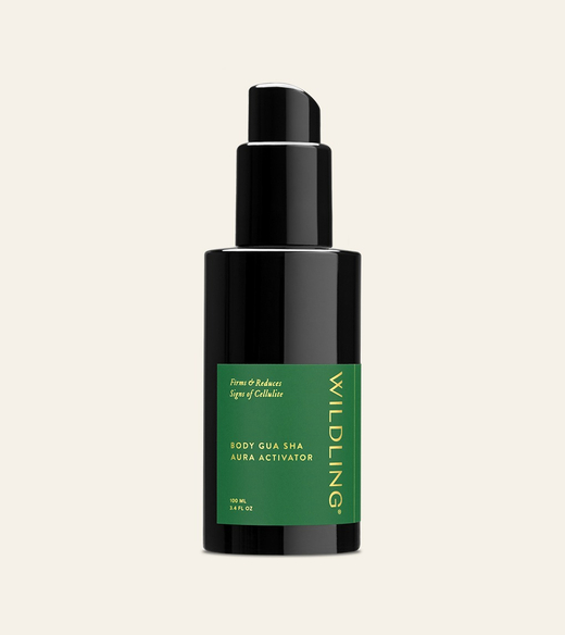 After dry brushing (and ideally a shower), apply the Aura Activator generously to the body or the areas where you would like to perform body gua sha. This body serum primes the skin with ultra-hydrating French Seaweed extract while Eastern White Cedar helps boost circulation.