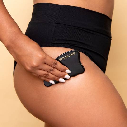 Many people note that body gua sha can reduce the look of cellulite. From an appearance standpoint, we see the beauty in all bodies, including those with more cellulite than others. From a purely holistic standpoint, cellulite can, however, be a by-product of dysfunctional fascia. When the fascia becomes stagnant — caused by anything from overwork to prolonged periods of sitting — it can actually cause these dimples in our skin. Working through the fascia on a regular basis helps restore it to its optimal state and leaves your body feeling energized.