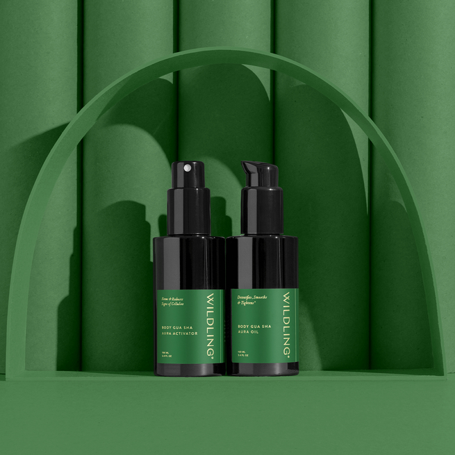 Mist the skin with Aura Seaweed Detox Body Mist, then apply Aura Rose Pepper Toning Oil to create glide. Follow with the Aura Stone to perform your gua sha ritual. See here for a tutorial.