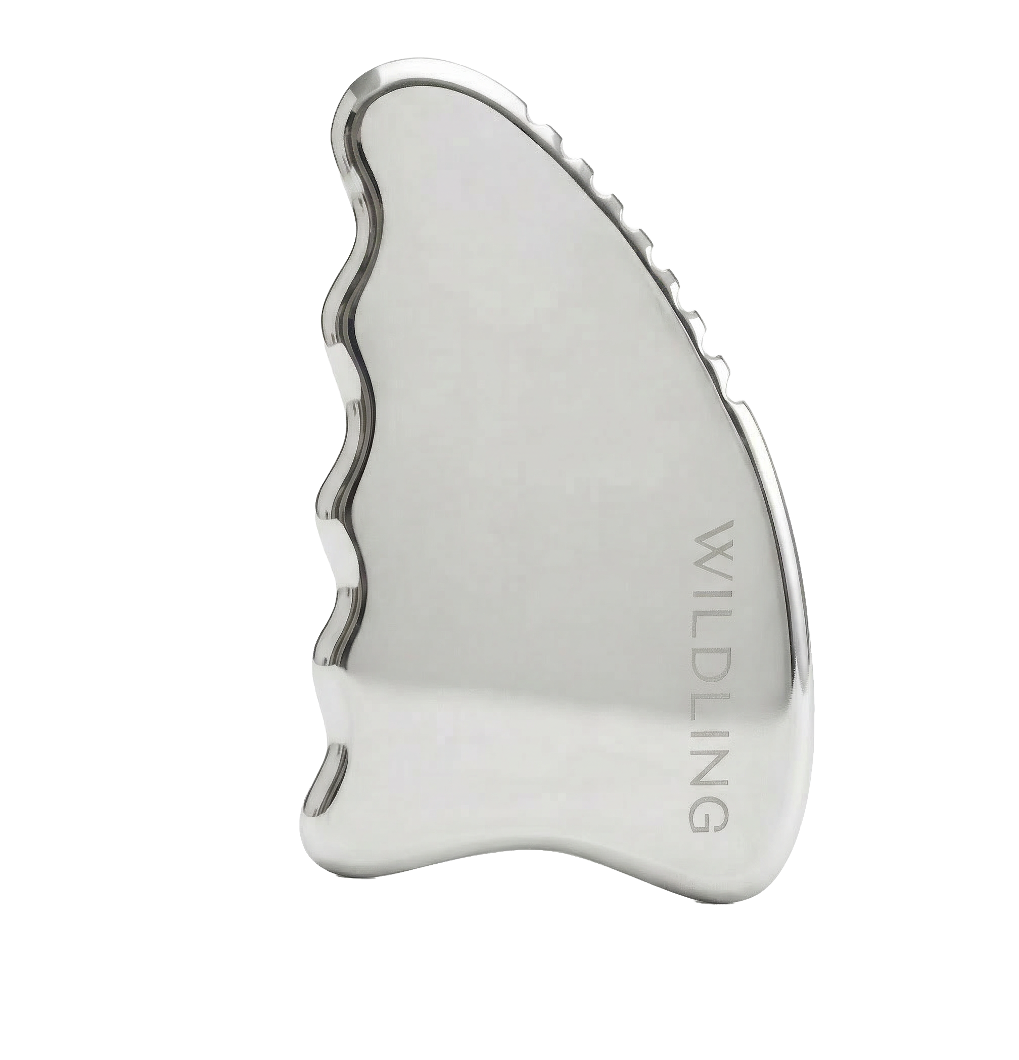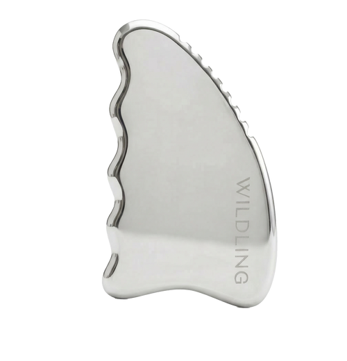 A patented, stainless steel body gua sha tool designed to sculpt, smooth, and support lymphatic drainage for visibly toned, energized skin.