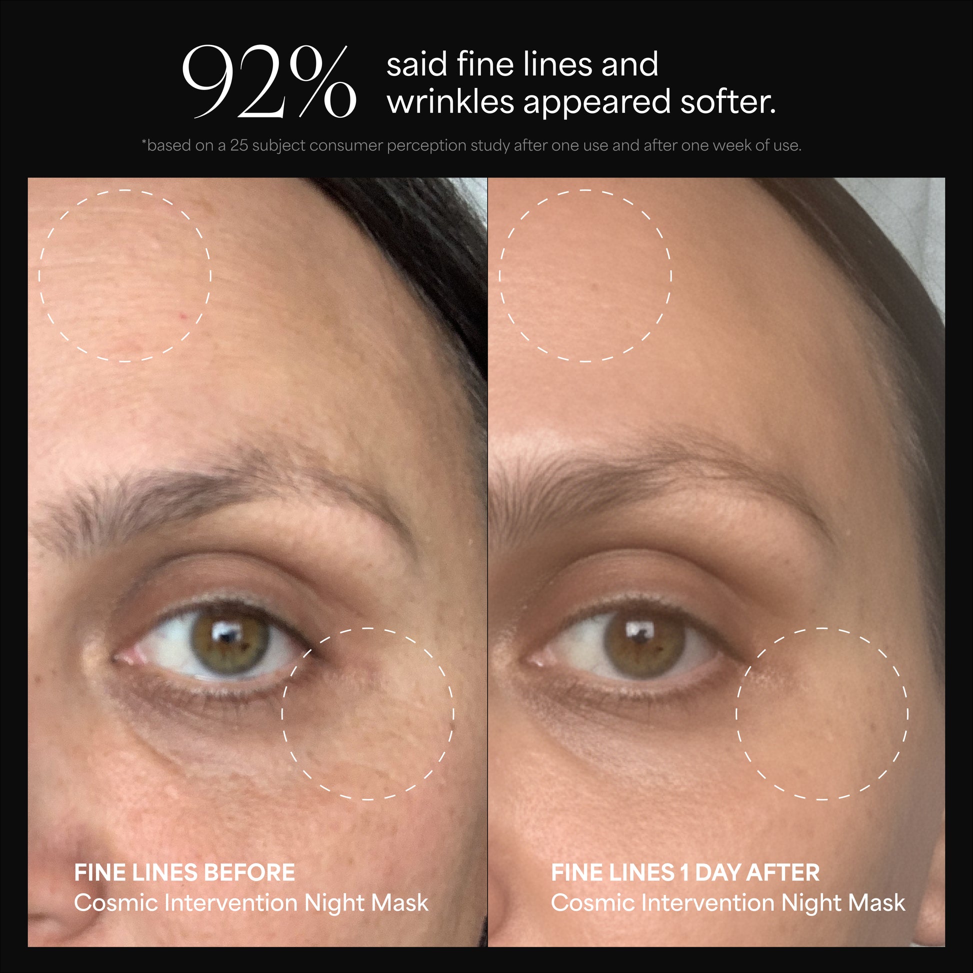 Neurocosmetics are ingredients that interact with the skin’s nervous system to promote relaxation, reduce cortisol, and improve skin tone and texture. In the Cosmic Intervention Night Repair Mask, they help release tension wrinkles, ease inflammation, and support overnight skin renewal for a radiant, well-rested glow.