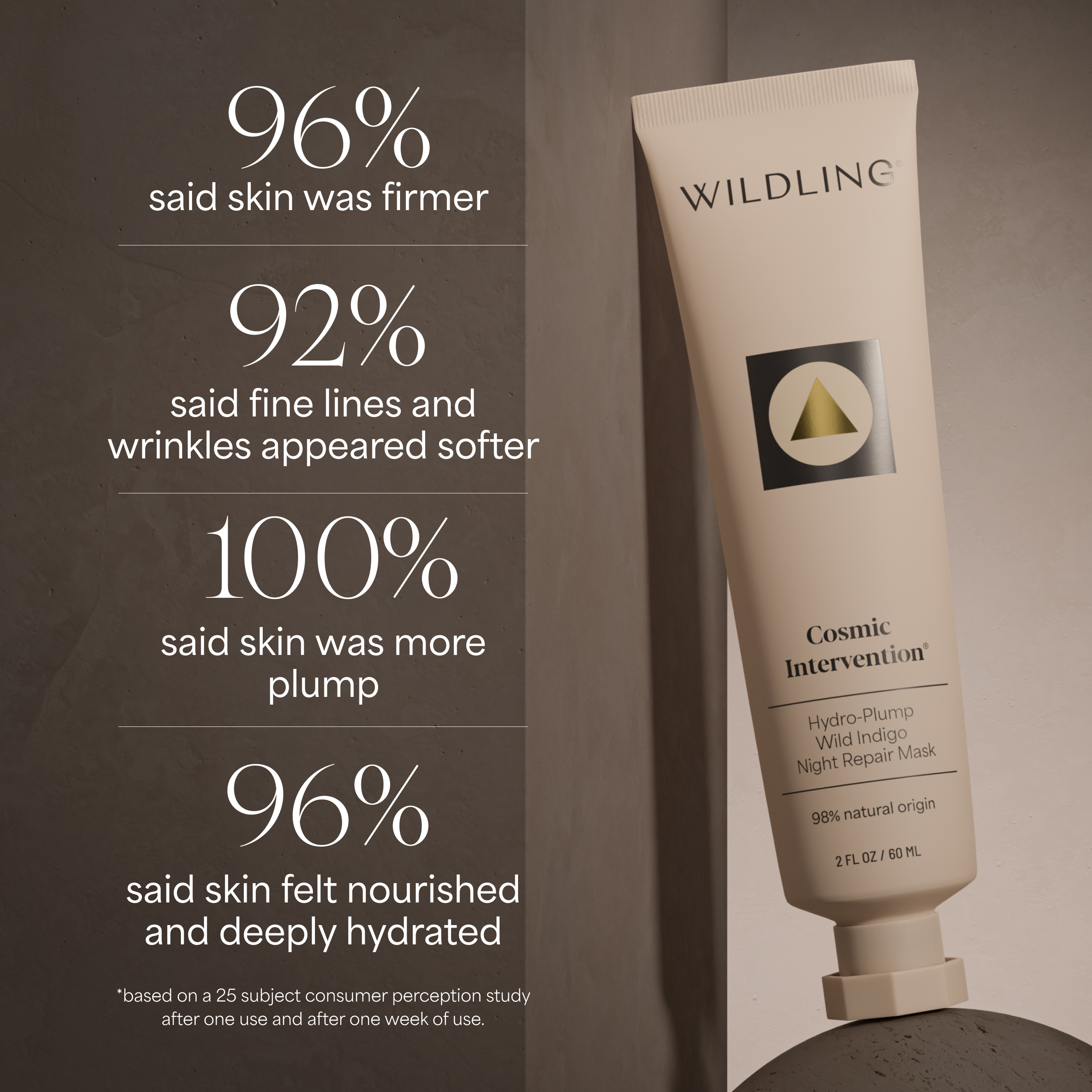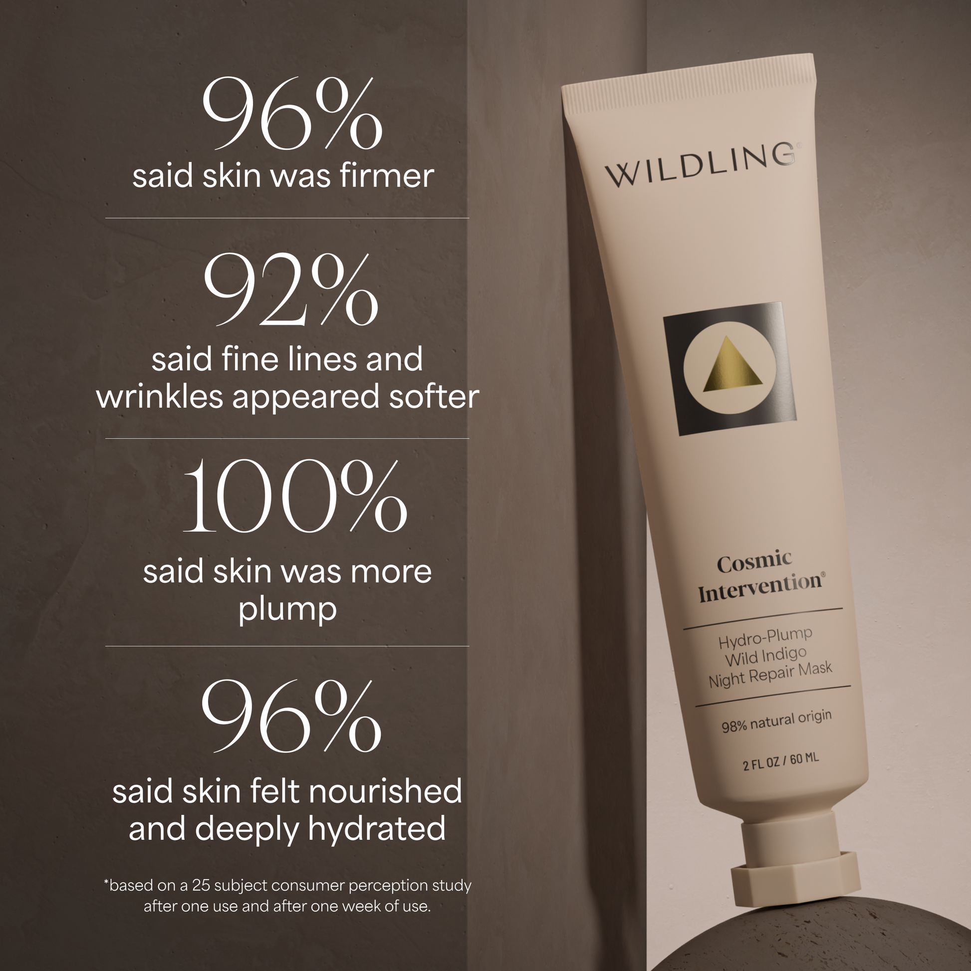 Cosmic Intervention Hydro-Plump Wild Indigo Night Repair Mask a wrinkle-relaxing treatment that works while you sleep. Clinically tested neurocosmetic actives calm inflammation, plump skin, and restore overnight renewal for visibly firmer, dewy, balanced skin by morning.