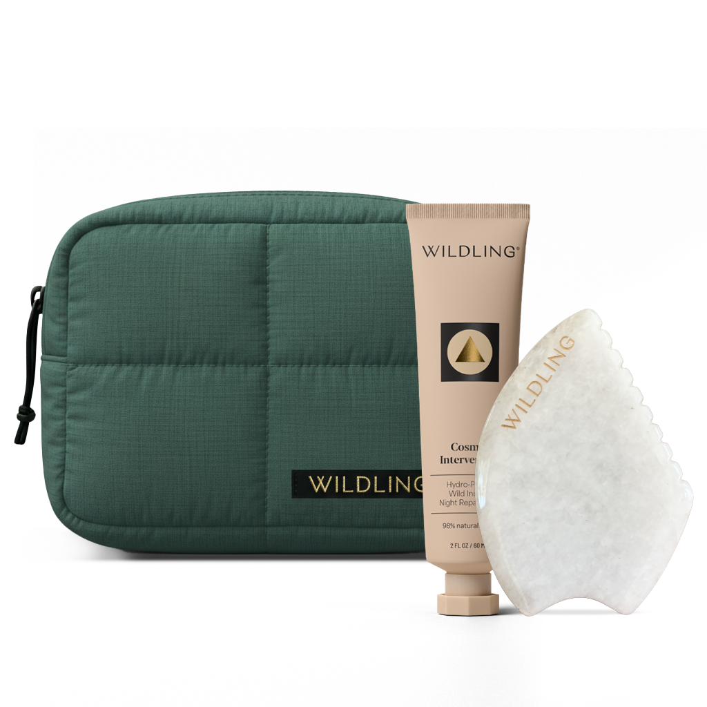 Evergreen Puffer (standard size) A soft, quilted puffer bag that keeps your skincare essentials protected and organized. The perfect home for your Wildling ritual, wherever the journey takes you.