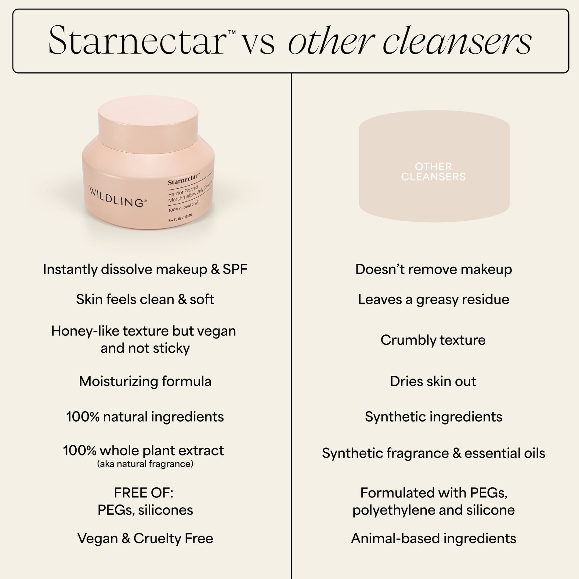 - Starnectar Jelly Cleanser dissolves makeup & SPF without stripping the skin